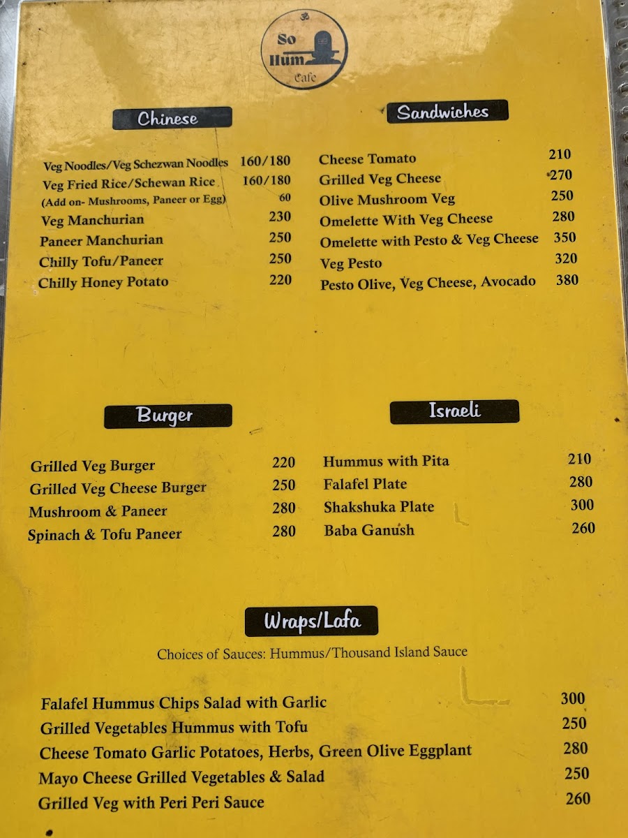 Sohum Cafe Menu